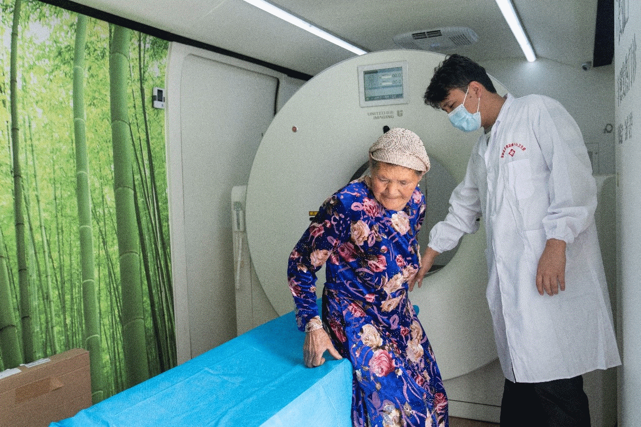 乡民在车载CT上做检查