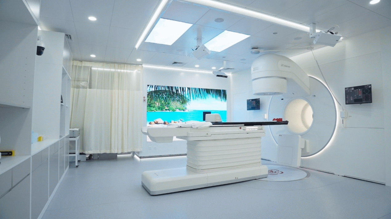 急诊放疗从构想变成现实,转机出现在uRT-linac 506c一体化CT直线加速器的引进。它将模拟定位CT 与直线加速器合二为一,突破了传统放疗多场地的局限,患者无需多次奔波就可以一站式完成整个放疗流程。治疗时间也从过去的3-5天缩短到现在的20-30分钟,大大减少了患者的等待时间,及时有效地缓解了急症患者的疼 “痛”。