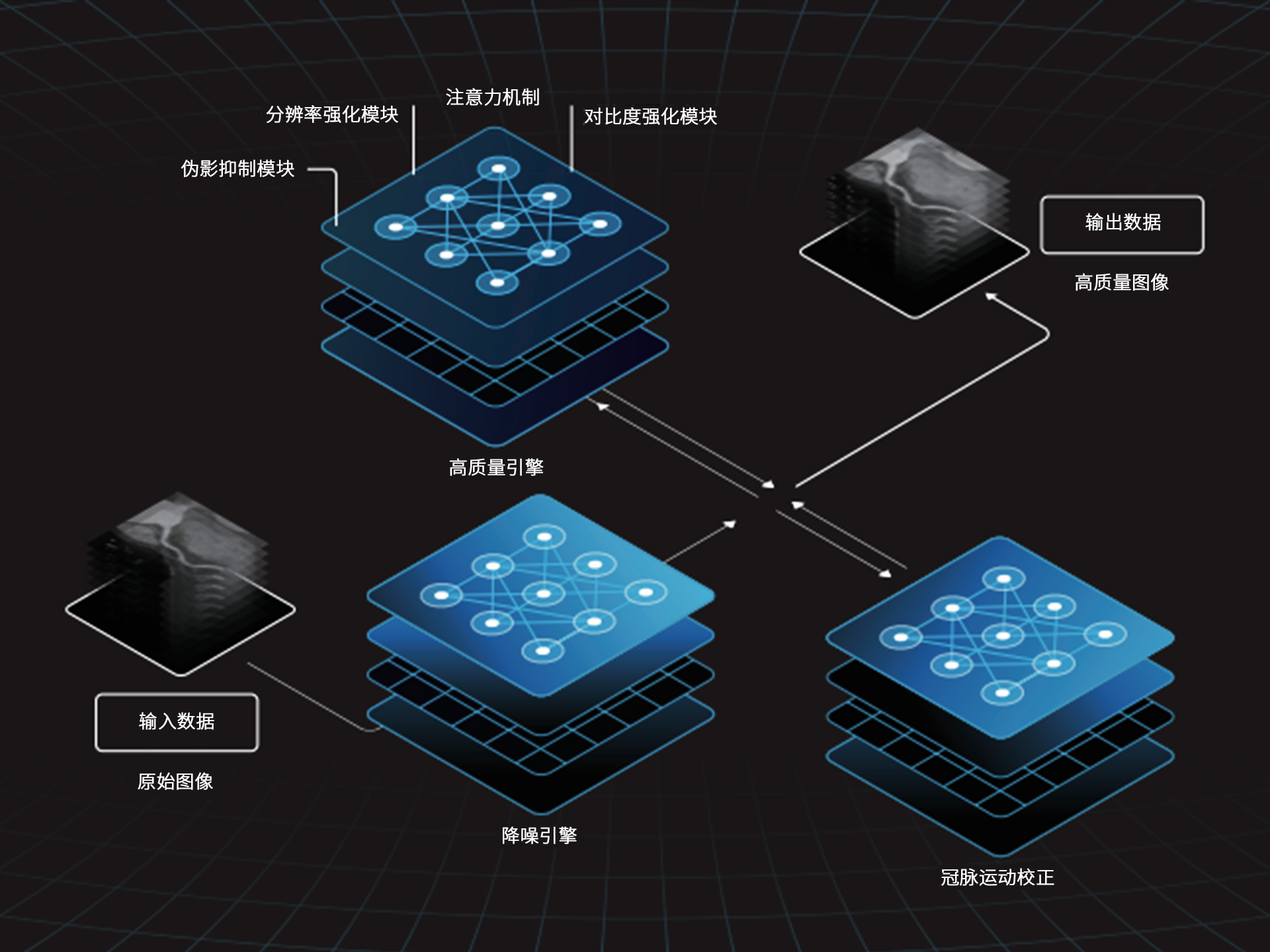 uCT 868 将人工智能深度融入 CT 成像的全链路流程,从采集、重建到后处理分析,实现智能技术与临床工作的自然协同。无需复杂操作,无感式介入,让AI 成为工作流程中默认的一环。从探测器的每一次感知,到影像重建的每一帧演算,再到临床交互的每一步路径,智能决策与精密硬件协同一体,大幅提升图像质量、诊断效率与操作一致性。uCT 868,不仅帮助医生看清更多,更让“如何做到”变得不再被感知,让精准、清晰、高效成为诊疗中的标准反应——这正是 uCT 868 所赋予的“本能级”影像体验。